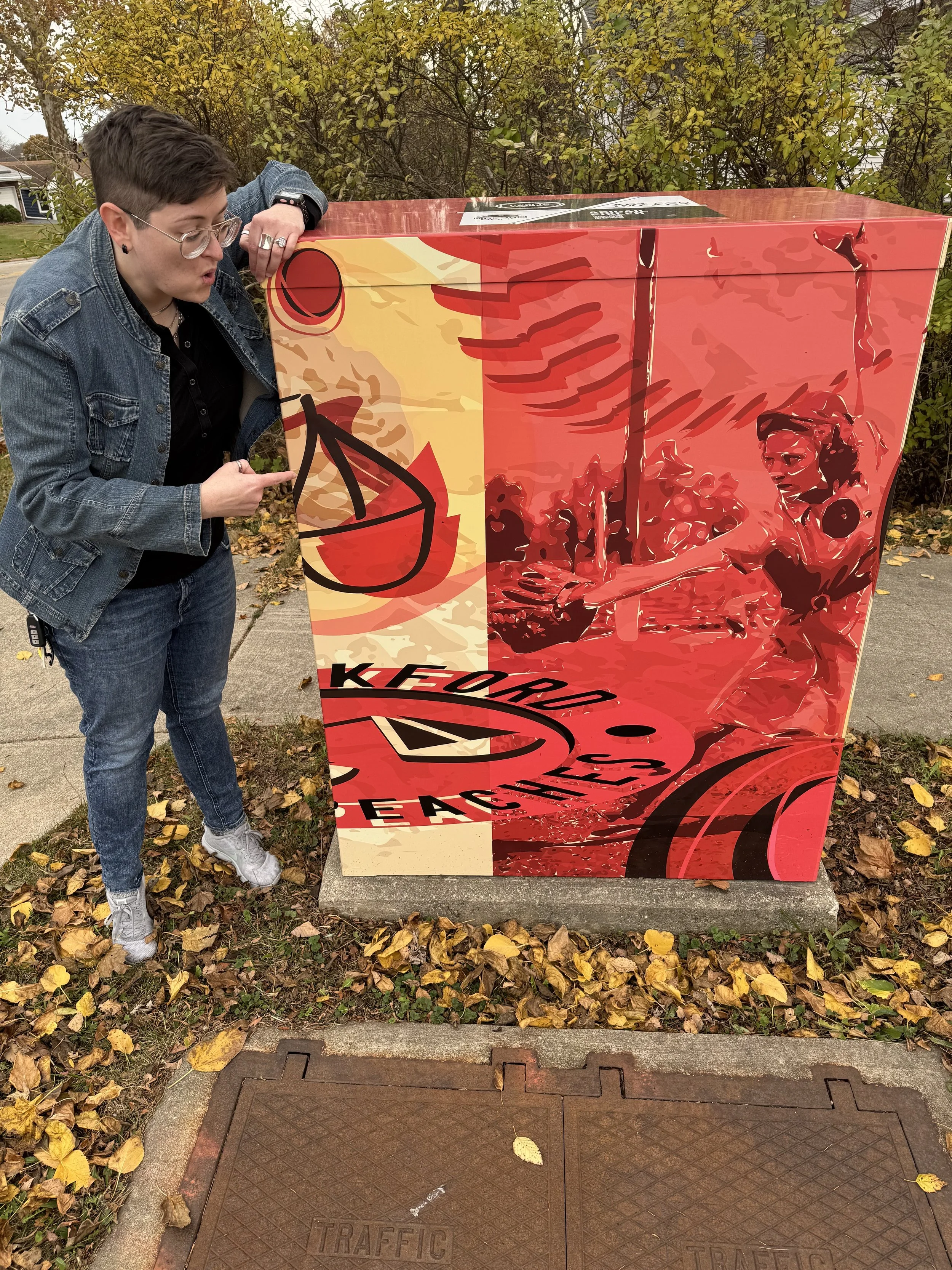 The RAAC (Rockford Area Arts Council) gave artists the opportunity to come up with a design that would be wrapped on two utility boxes around town. Talk about an amazing way to liven up a plain ole industrial power box! I went with a theme from one of my favorite Rockford assets from the past - The Rockford Peaches! Honing in on vintage imagery, the retro logo and a backdrop of a peach, I made a pop art-inspired piece that keeps your eye in motion. The box even features my name and a QR code to my arts council directory page on top of it! How cool is that?!