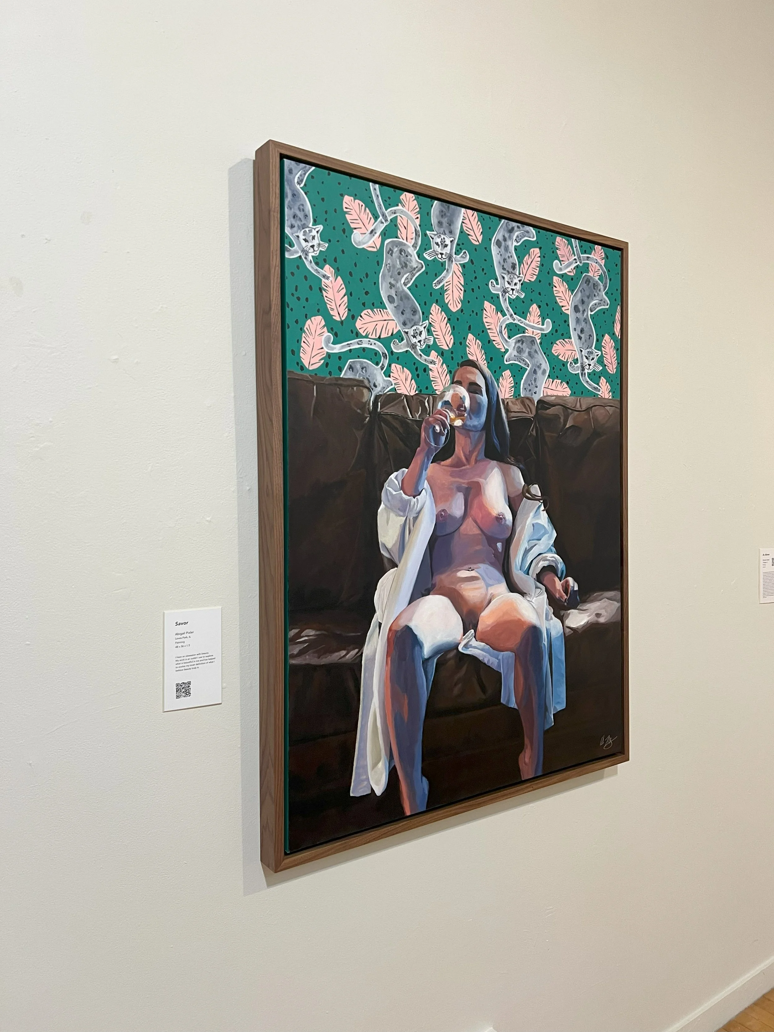 The Freeport Art Museum’s 21st Regional Juried Exhibition title Current, showcased 40 artists chosen out of a pool of 230 submissions. I was beyond grateful to have been included within the pool of super talented artisans from all over the midwestern region. Savor is on display in one of the main galleries as soon as you enter the doors and will be on display from May 10th through July 19th. The work was recently framed in a solid walnut floating frame and is a large sight to behold in person. A huge thank you to the team at Freeport Art Museum for their warmth and commitment to the arts!